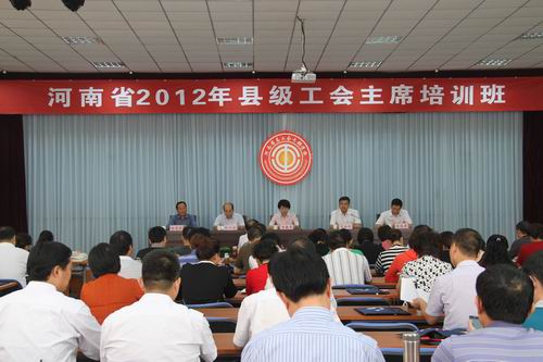 2012年9月18日,河南省县(市、区)工会主席培训班在河南省总工会干部学校开班。省总工会副主席王春萍出席开班典礼并做重要讲话,省总干校校长、党委书记吴新锋致欢迎辞,省总组织部部长郭永旗、副部长李延举出席了开班典礼。